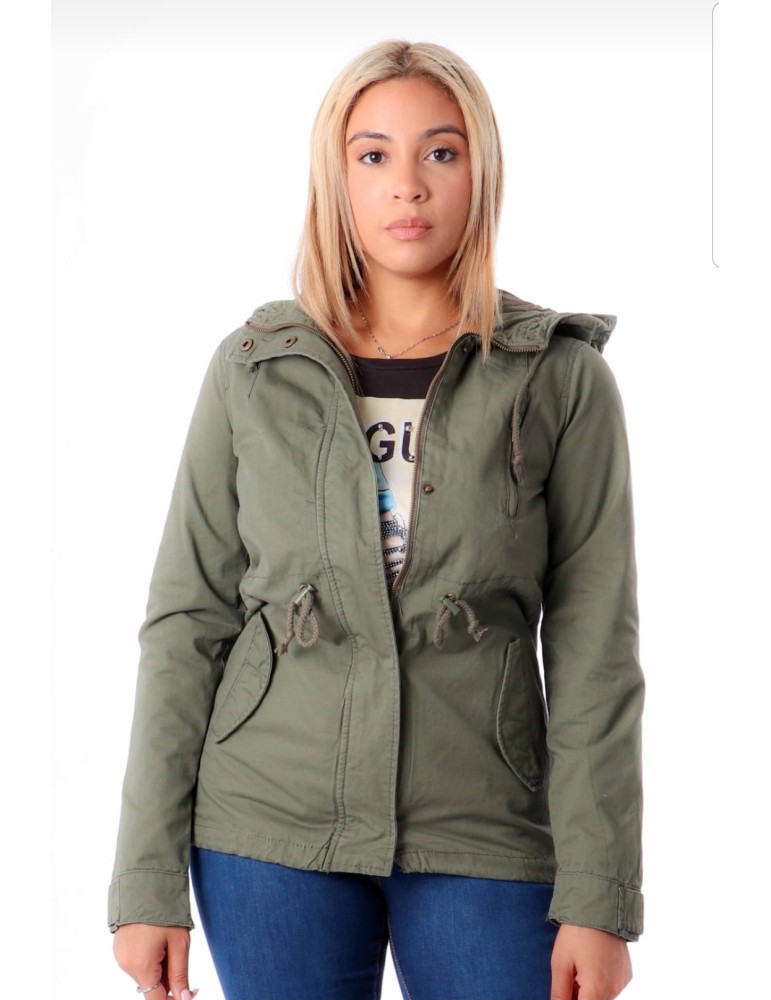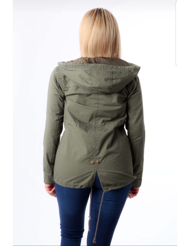 Hoodie Jacket with front zipper, flaps pockets on the front and button.