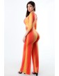 Tie dye print design 3/4 sleeve deep V-Neck full length jumpsuit.