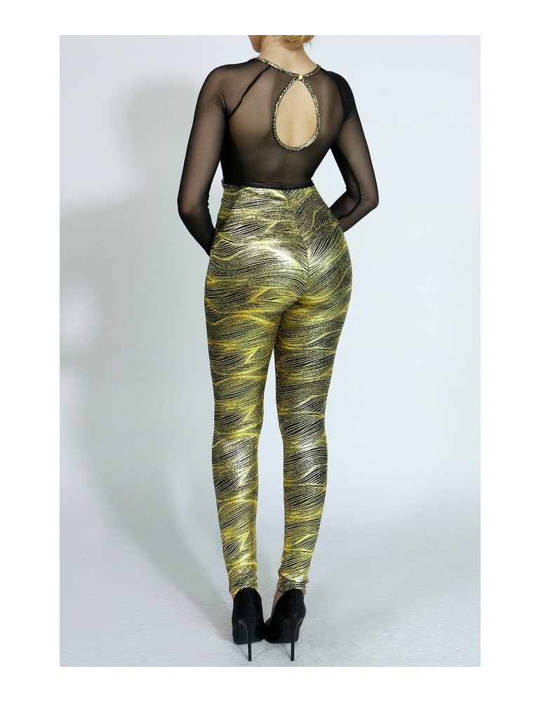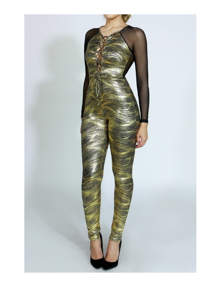 Long see-through mesh sleeves jumpsuit.