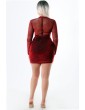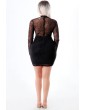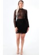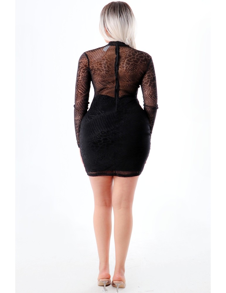 Animal print mesh mock neck long sleeve mini bodycon dress.