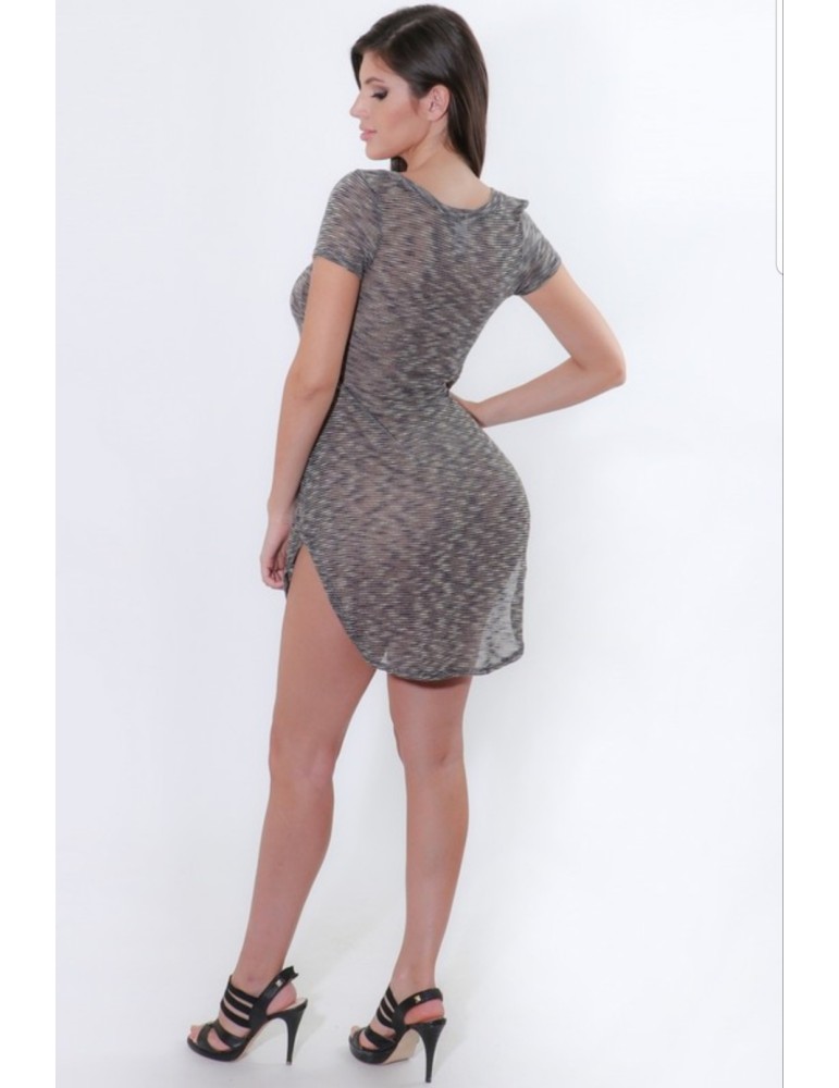 Semi see through T-Shirt tunic dress with round out high and-low bottom, neatly finished ends.