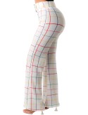 High waisted checker pattem design full length stretch pant, with belt included and front zipper.