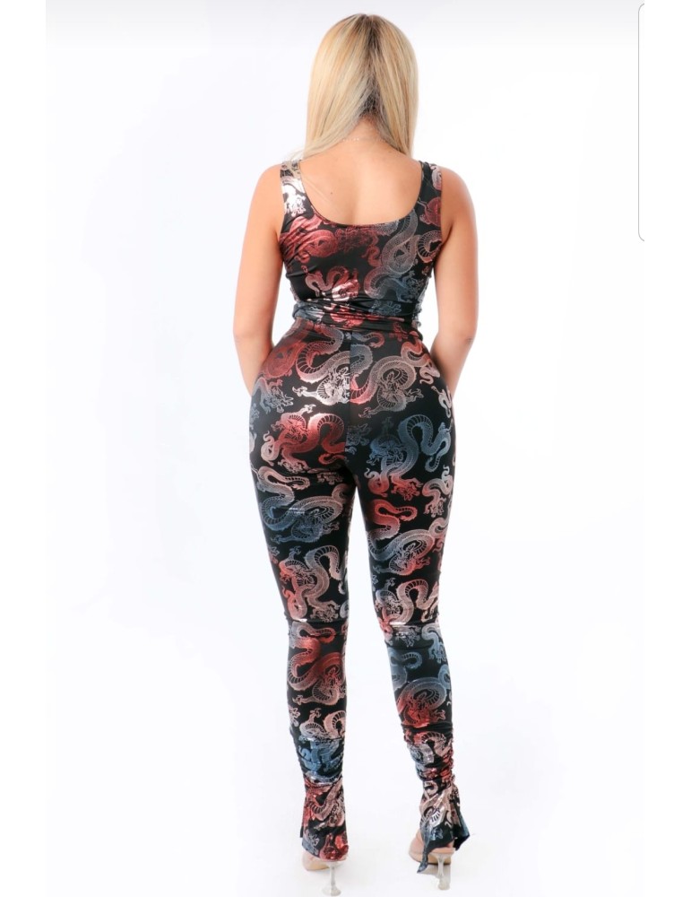 Sheer top with front zipper and long elastic legging pant, 2piece set.