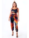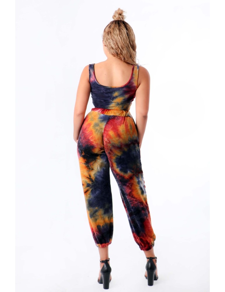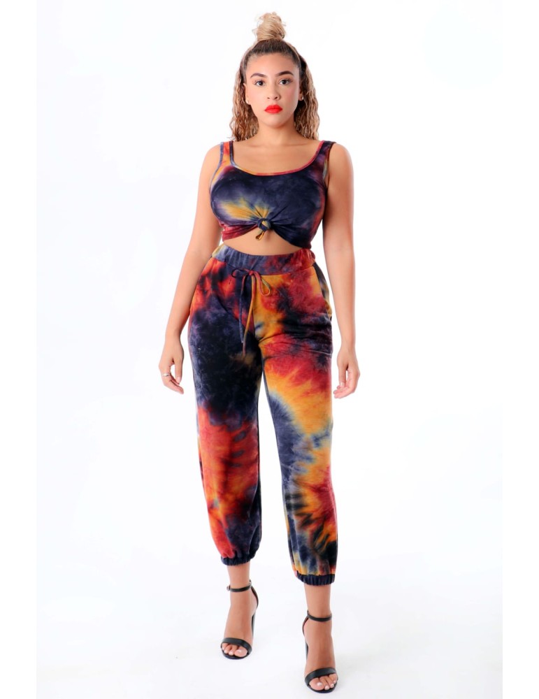 Tie dye short sleeve round neck legging 2pc stretches top and pant set.