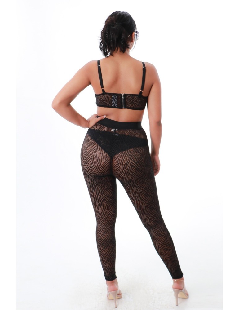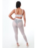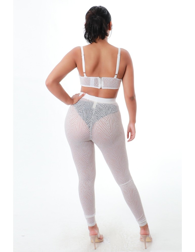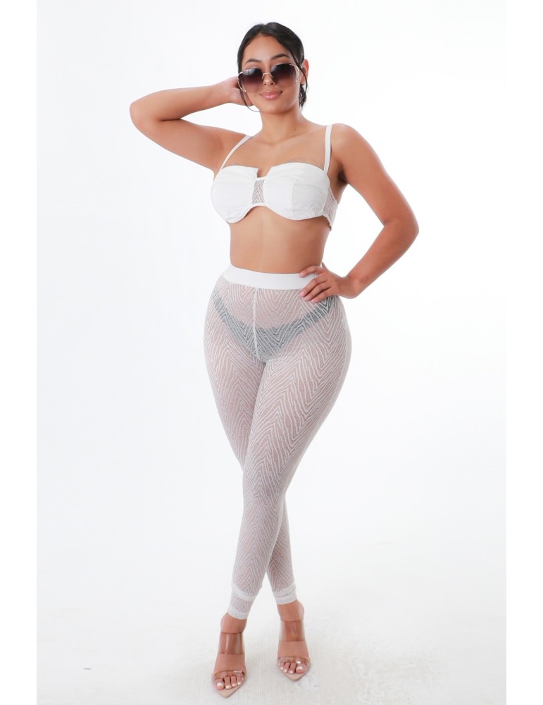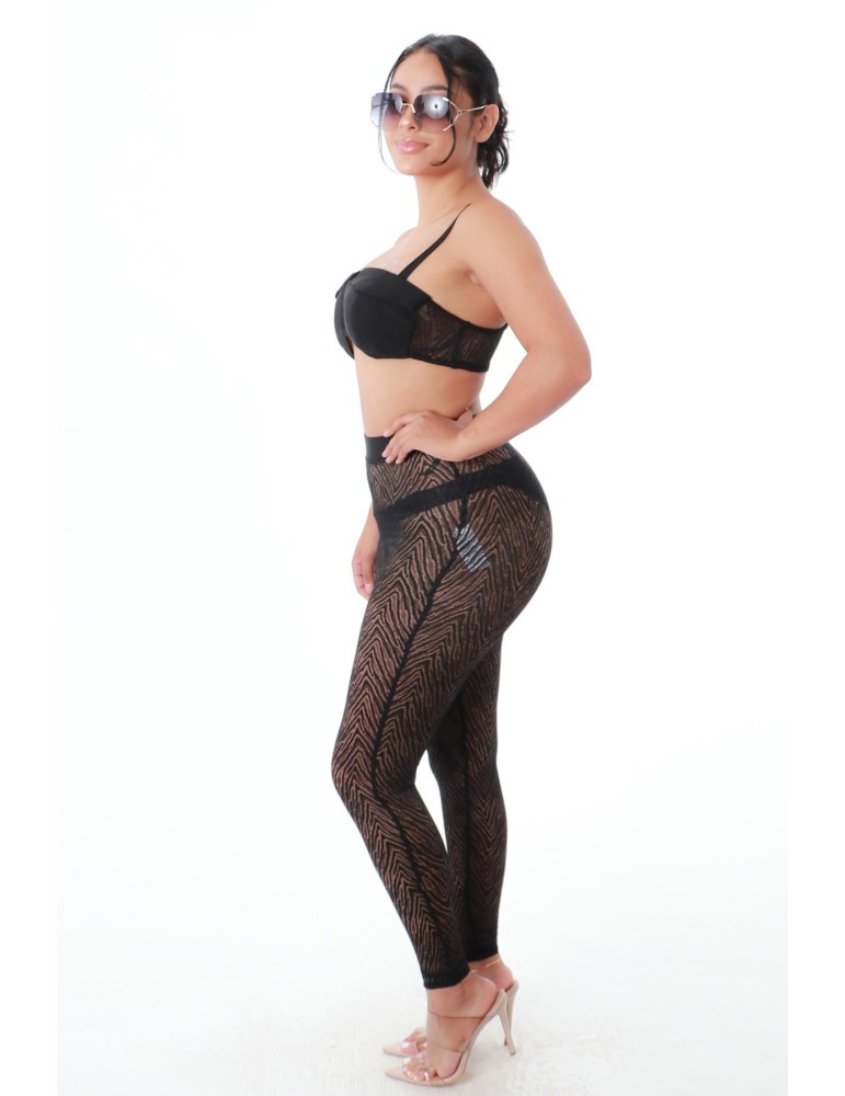 Halter neck sleeveless bikini like top and mesh pant with lining and shirring set.