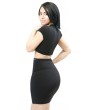 Sleeveless cut out bodycon dress with golden stud accents, deep v-neck and open waist, soft lining skirt Set.