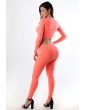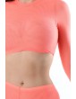 Solid mesh design long sleeve round neck op and matching skinny mesh pant, 2pc set.